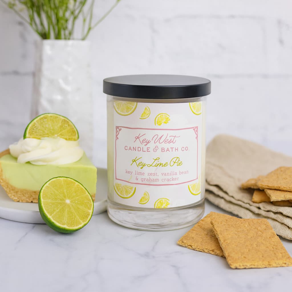 Crafted with premium soy wax and natural fragrance oils, our Key Lime Pie Candle burns cleanly and evenly, making it the ideal gift for any candle lover, foodie, or Key West enthusiast.