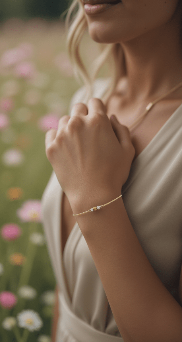 We designed this bracelet to remind us that the world could use a little more Harmony right now! Featuring a Gold Filled Stardust bead surrounded by two Sterling sparkle beads! All Earth Grace bracelets stack together beautifully, but this is one of our most stackable! Made with environmentally friendly recycled precious metals. Made in USA.