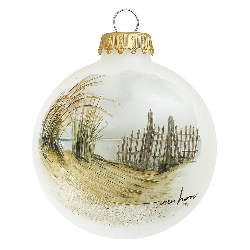 Bring a peaceful coastal mood to your tree with this exquisite hand-painted glass ornament. Each piece is an original acrylic painting on a 3¼” frosted glass globe, capturing the soft textures of dune grass, sea sand, and shoreline serenity.