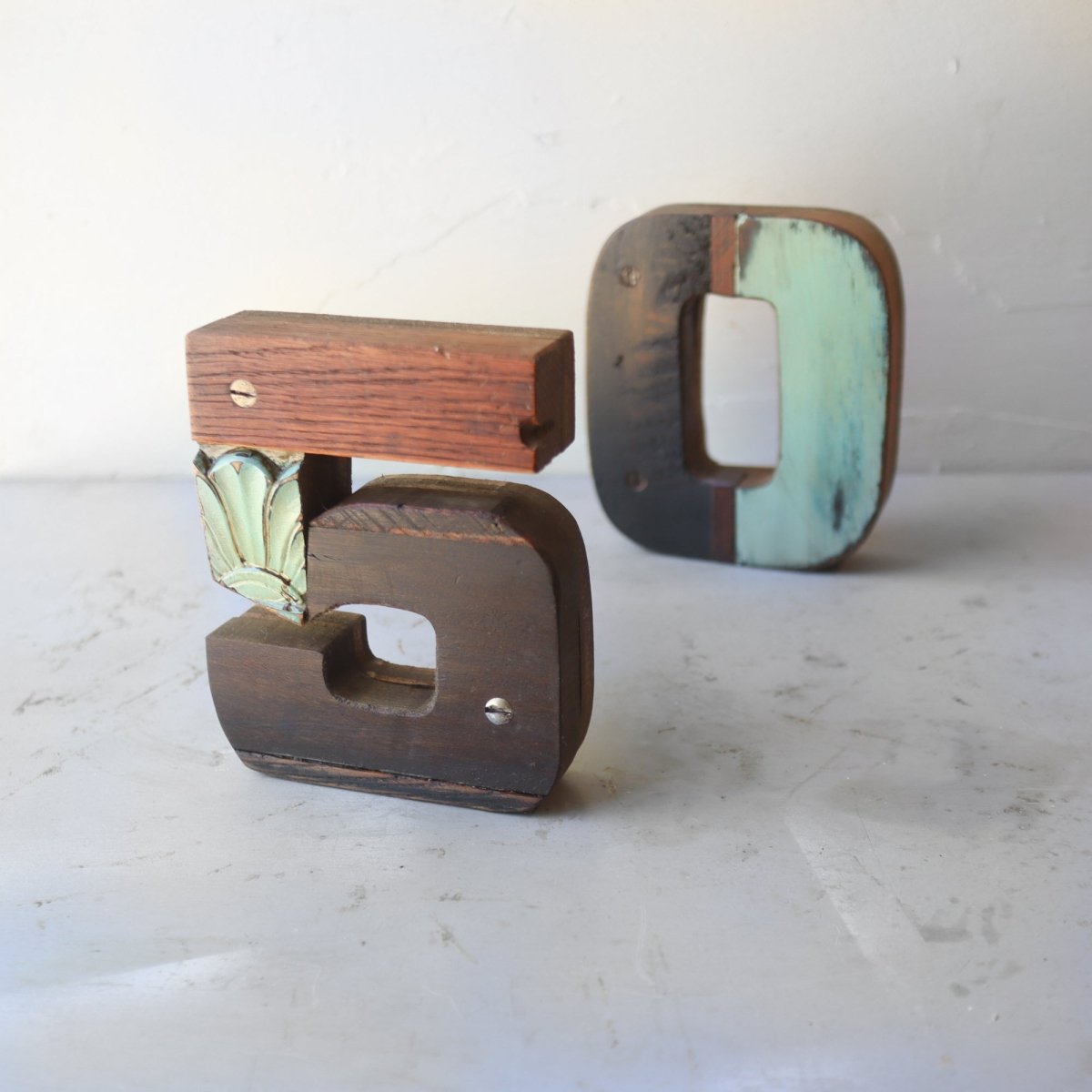 These wooden numbers are hand-crafted with reclaimed piano and other antique furniture woods. Each uses a variety of woods to achieve an eclectic look—no two are exactly alike! These numbers make great personalized gifts!