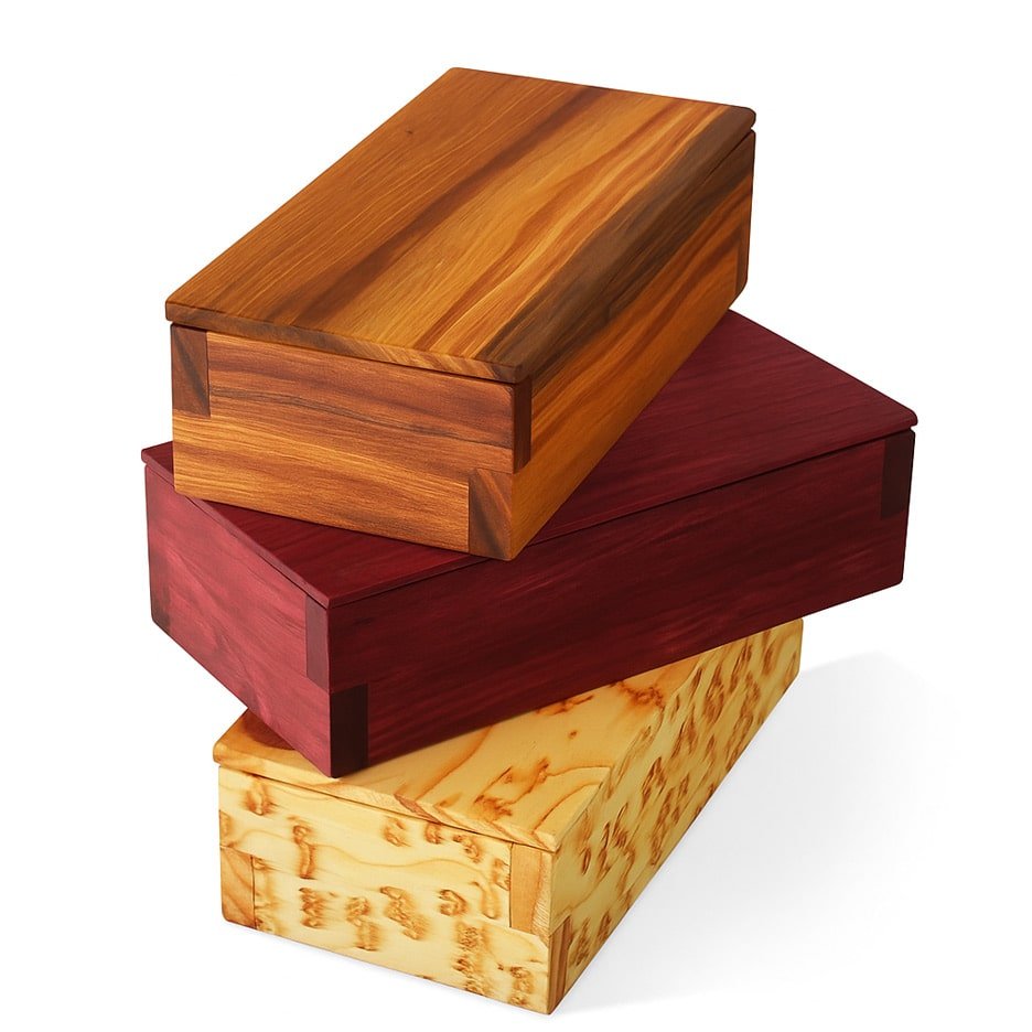 We made these beautiful boxes with a rare selection of aged and exotic woods, and they were a huge hit! We've had so many requests for more boxes made with these beautiful woods that we decided to make another small batch of them.