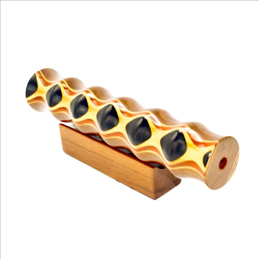 Unleash the hidden beauty of the world with the Ebony Eye 9" Teleidoscope. A flawless work of art created from Teak Ebony, Jalneem Woods, and other solid woods, this masterpiece is proudly handcrafted in the USA. Complete with a solid wooden base and an elegant blue gift box, this package is the ultimate duo for experiencing the magic of art. Unlike traditional Kaleidoscopes, the Teleidoscope utilizes a clear lens to transform everyday objects into mesmerizing kaleidoscopic patterns. Order now and discover the endless wonder that this Teleidoscope brings, revealing the hidden artistic potential of your surroundings in a whole new light.