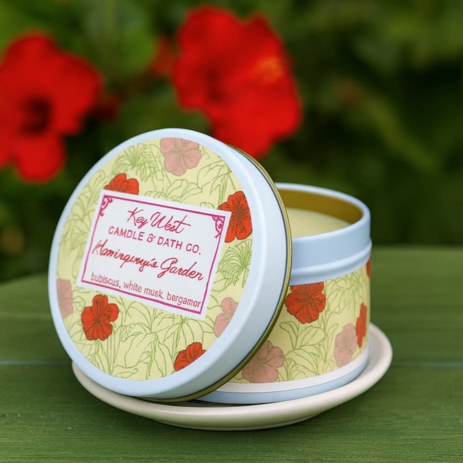 This hand-poured candle opens with the citrusy brightness of bergamot, unfolds into the lush, tropical sweetness of hibiscus, and finishes with a warm, airy musk that lingers gently in your space. Inspired by the lush gardens surrounding Hemingway’s iconic home, this scent evokes quiet mornings spent among flowering trees, sunlit patios, and whispers of sea breeze.