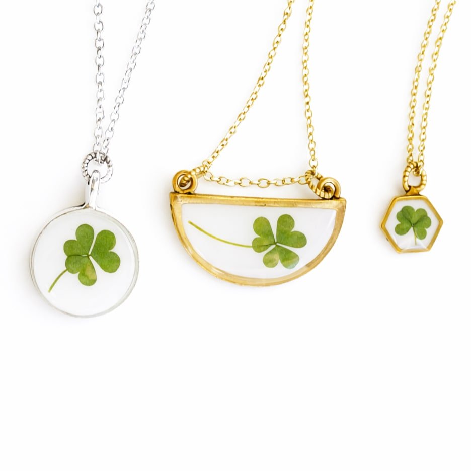 Focus Keyword: real clover necklaces, pressed clover necklace, St. Patrick’s Day jewelry, botanical necklace, lucky clover pendant, nature-inspired jewelry