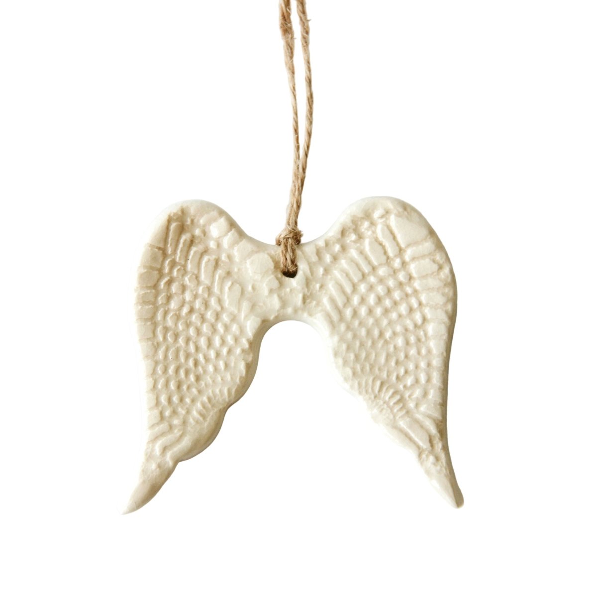 Celebrate this Christmas season with this beautiful Angel Wing Ornament, perfect to hang on your tree, tie to a gift, or gift to your loved ones. These precious, handmade ornaments are pressed with lace and are sure to make you and your loved ones smile.