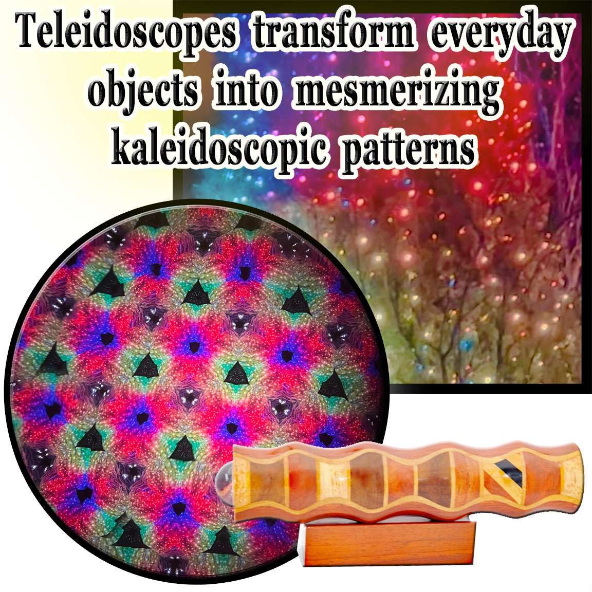 Unleash your creativity with the 7" Marquetry Pattern Teleidoscope, a USA-made marvel! Crafted with exquisite padauk marquetry and fine woods, it radiates elegance. The natural beauty is enhanced by a solid wooden base, presented in a charming blue gift box—ideal for gifting. What sets it apart from a traditional Kaleidoscope? A Teleidoscope lacks preset colors, using a clear lens to transform any focal point into a kaleidoscopic masterpiece. Empowering you to discover artistic value in your surroundings, it's a magical tool. Elevate your perspective today with this exceptional piece—order now and embrace the artistry within your reach, seeing the world through new eyes.