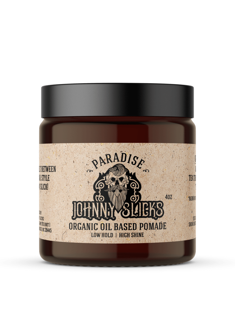 Our Organic Oil Based Pomade is a classic, all-natural men’s hair pomade designed to keep hair healthy, styled, and smelling great all day. Formulated with a signature blend of tea tree, argan, and jojoba oils, this pomade helps promote healthy hair, defend against dandruff, and nourish the scalp.