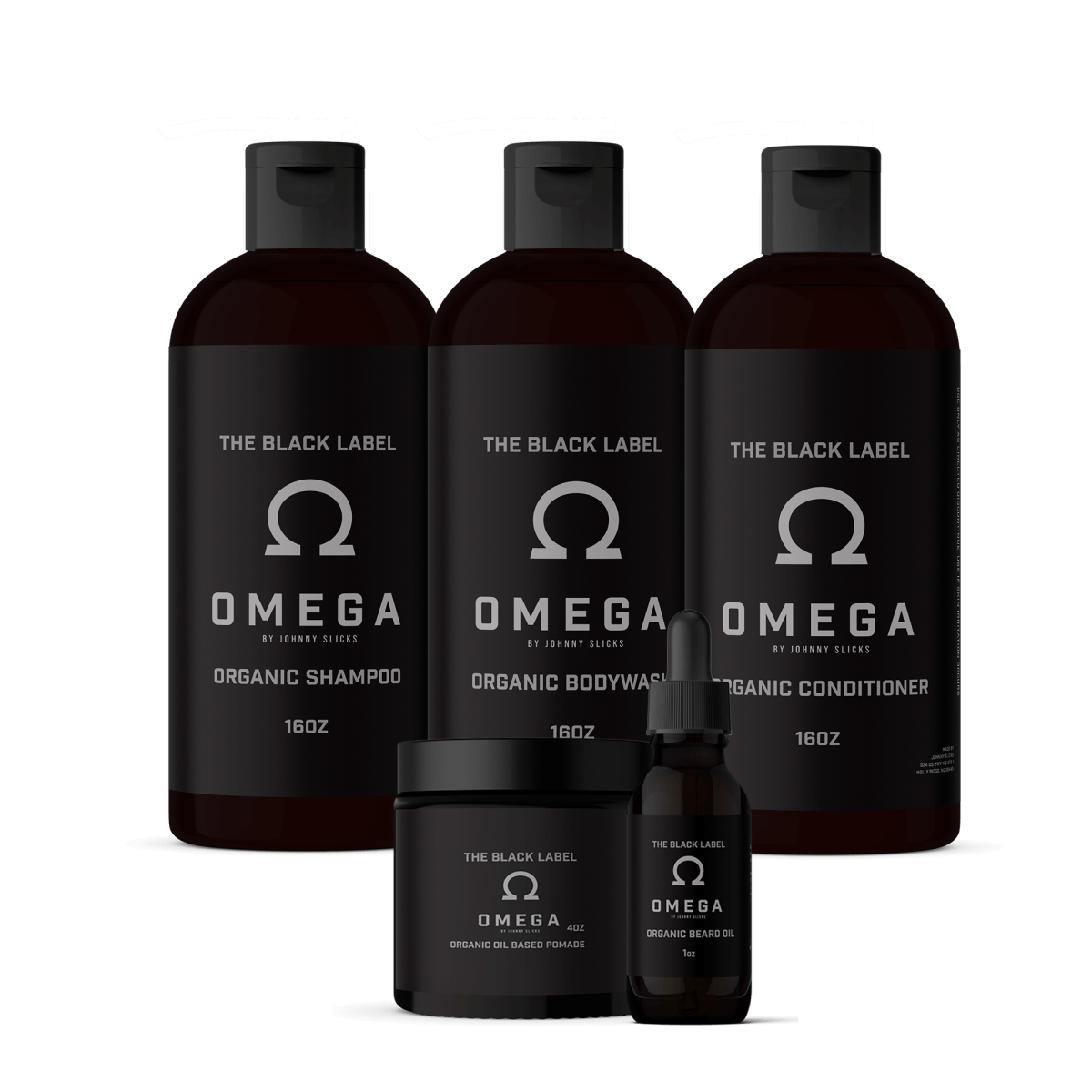 The Distinguished Omega Set is a complete organic men’s grooming system designed to cleanse, protect, and style hair, skin, and beard. This premium all-in-one set features organic shampoo, body wash, conditioner, oil-based pomade, and beard oil, crafted with a signature blend of tea tree, argan, and jojoba oils.