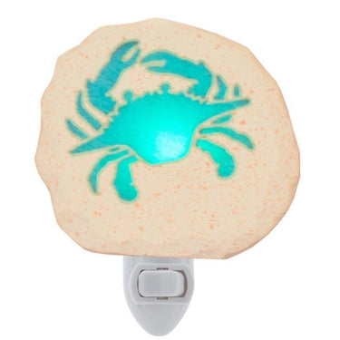 Discover the coastal charm of Spot Light Designs' Atlantic Blue Crab Nightlight. Expertly handcrafted by Kevin Aguilar, this 4W masterpiece is made of hydrostone and epoxy glue, and exudes the essence of the sea with its almond-tan hue and sandy texture. With a UL-approved fixture, on/off switch, and 4W bulb, it easily plugs into any standard A/C outlet. Packaged in a 5”x2”x5” gift-ready brown chipboard box, this delightful 4'' x 5''x 2'' nightlight showcases the scientific beauty of Callinectes sapidus and ships in just 4-6 days. Illuminate your space and embrace the unique allure of the Atlantic Blue Crab.