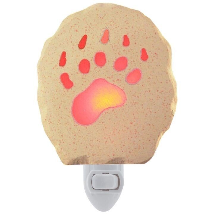 Enhance your evenings with the Bear Paw Nightlight by Spot Light Designs. With bears being a revered symbol in Native cultures for their strength and wisdom, this 4W handcrafted nightlight embodies those same qualities. Made from a mixture of hydrostone and epoxy glue, it emits both a powerful light and a sense of comfort with its almond-tan color and textured sandstone appearance. UL-approved with an on/off switch and a 4W bulb, it easily plugs into any standard A/C outlet for convenience. Packaged in a 5”x2”x5” brown chipboard box, it makes for a thoughtful gift for yourself or a loved one. Each piece, created by artist Kevin Aguilar, is made to order and ships in just 4-6 days, adding to the enchantment and strength of the Bear Paw Nightlight. Experience its unique charm with variations in color, shape, and size.