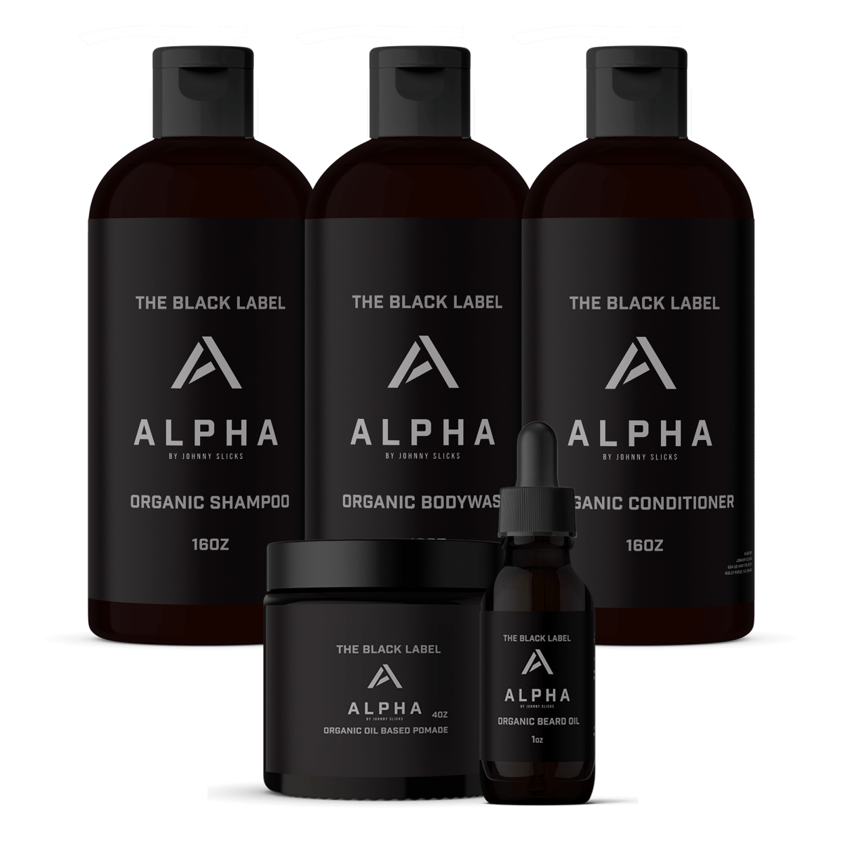 The Executive Alpha Set is an all-in-one organic men’s grooming kit designed for healthy hair, skin, and beard care. This premium set includes organic shampoo, body wash, conditioner, oil-based pomade, and beard oil, all crafted with 100% organic ingredients and a signature blend of tea tree, argan, and jojoba oils.