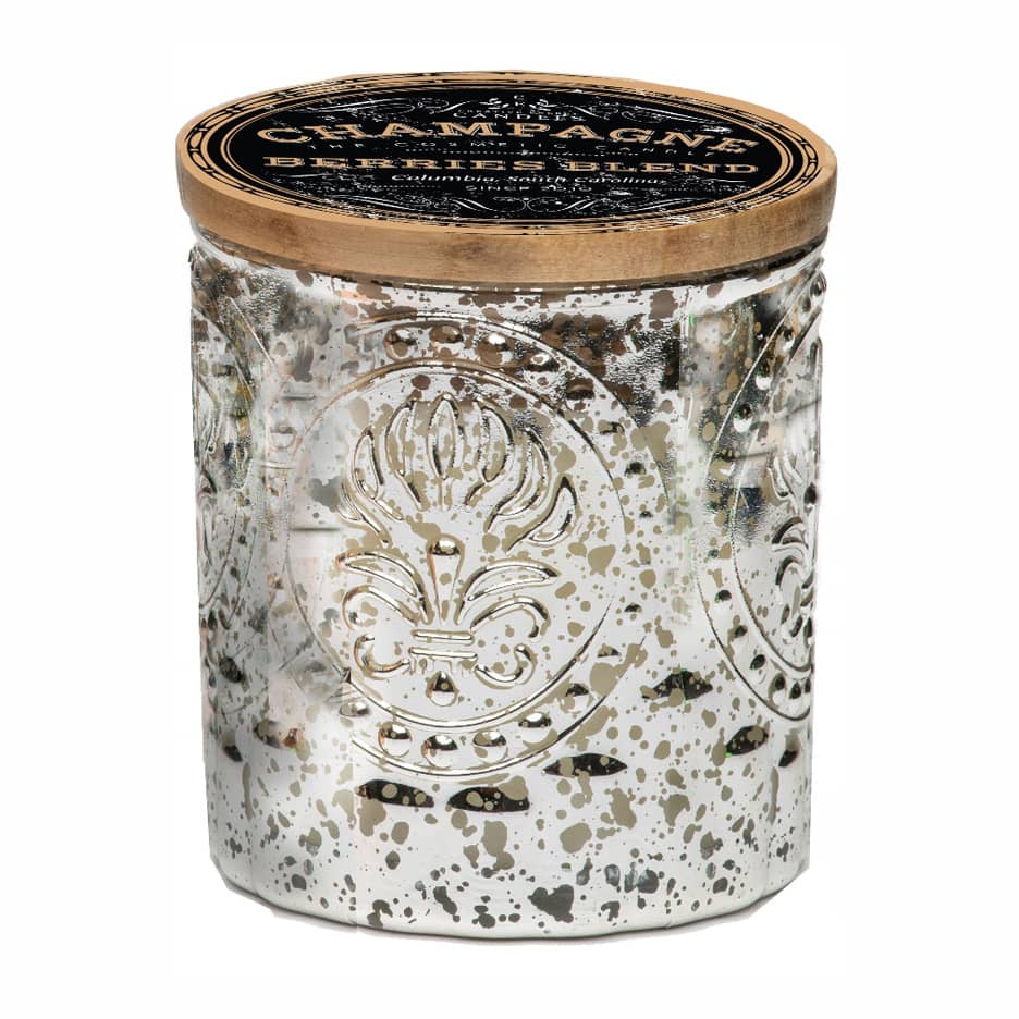 Champagne and Berries Soy Candle in Silver Mercury Glass Jar