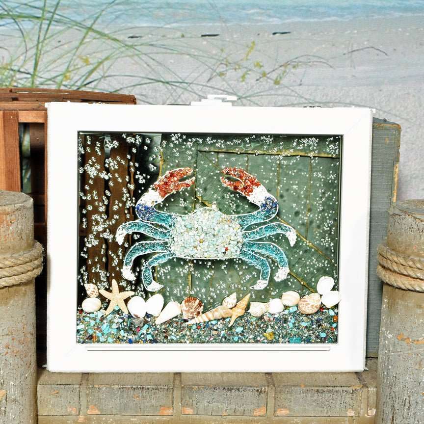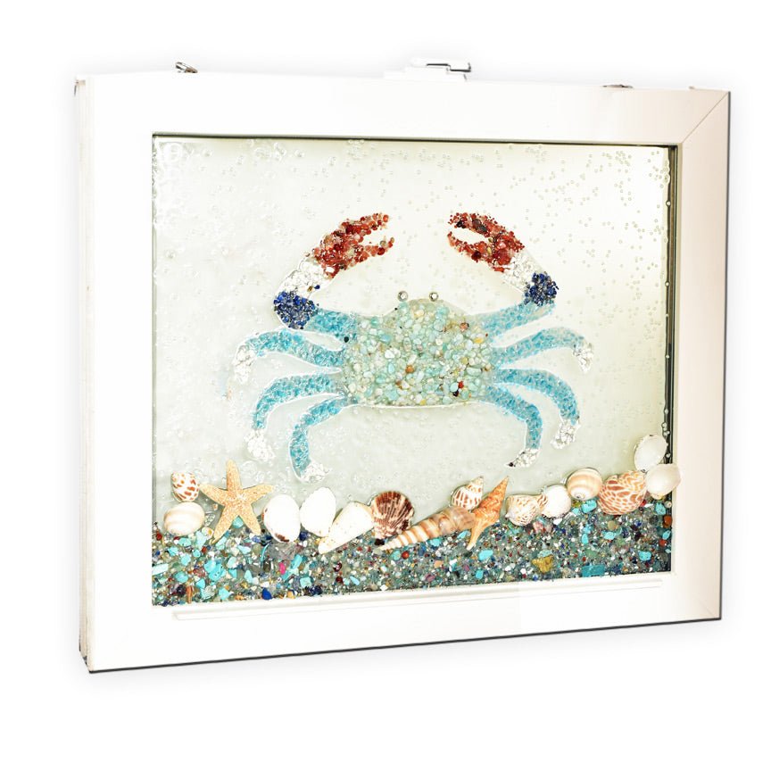 Chesapeake Blue Crab Window Resin Art With Real Seashells