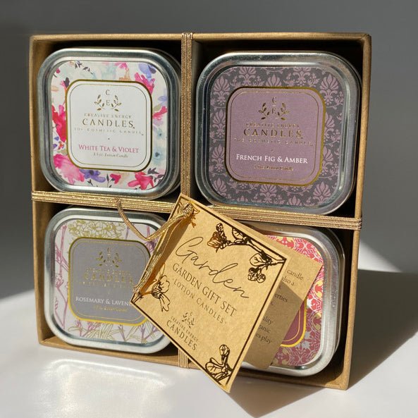 Garden Gift Set | 2-in-1 Soy Lotion Candles Bring the fresh scent of the garden indoors with this beautifully curated candle gift set. Each 2-in-1 soy candle melts into a nourishing lotion, combining fragrance and function.