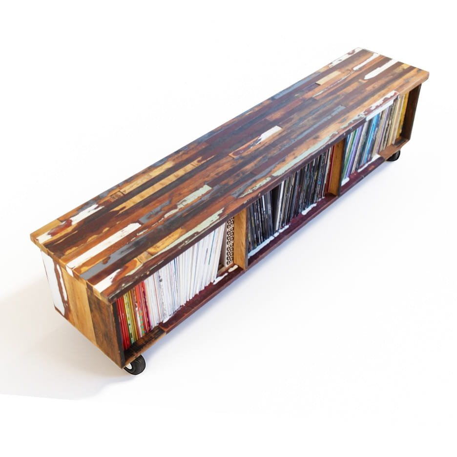Reclaimed Wood Turntable Stand & Vinyl LP Storage